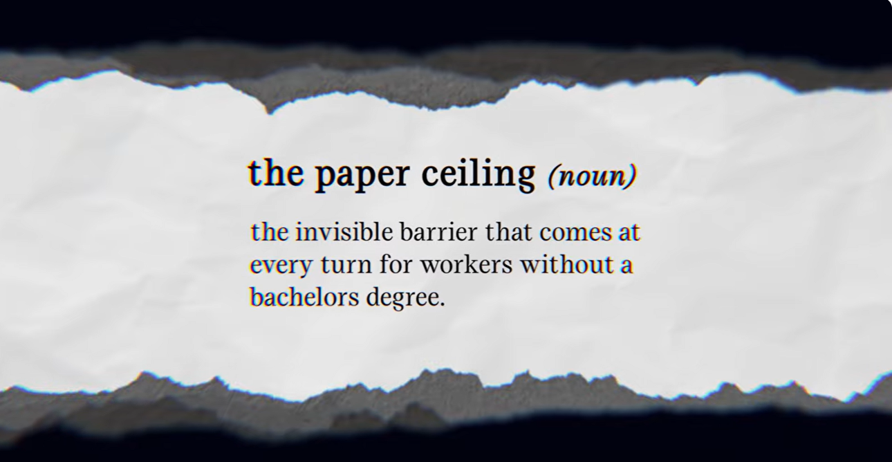 Opportunity@Work’s Tear the Paper Ceiling campaign, launched in 2022 in partnership with the Ad Council, is sparking national awareness and motivating action by companies, policymakers, talent platforms and decision-makers. Over 90 partners, including major corporate employers, have removed degree requirements and are now adopting skills-first hiring. To date, 30 states have committed to removing degree barriers from their hiring processes.